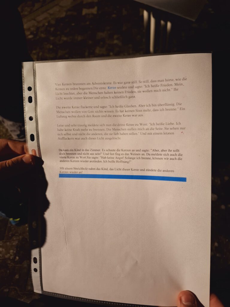 Mit einer kleinen Geschichte erklärten das DRK Marienborn und das Jugendrotkreuz die Verbindung zwischen den Grundsätzen der Menschlichkeit und der Bedeutung der Adventszeit.