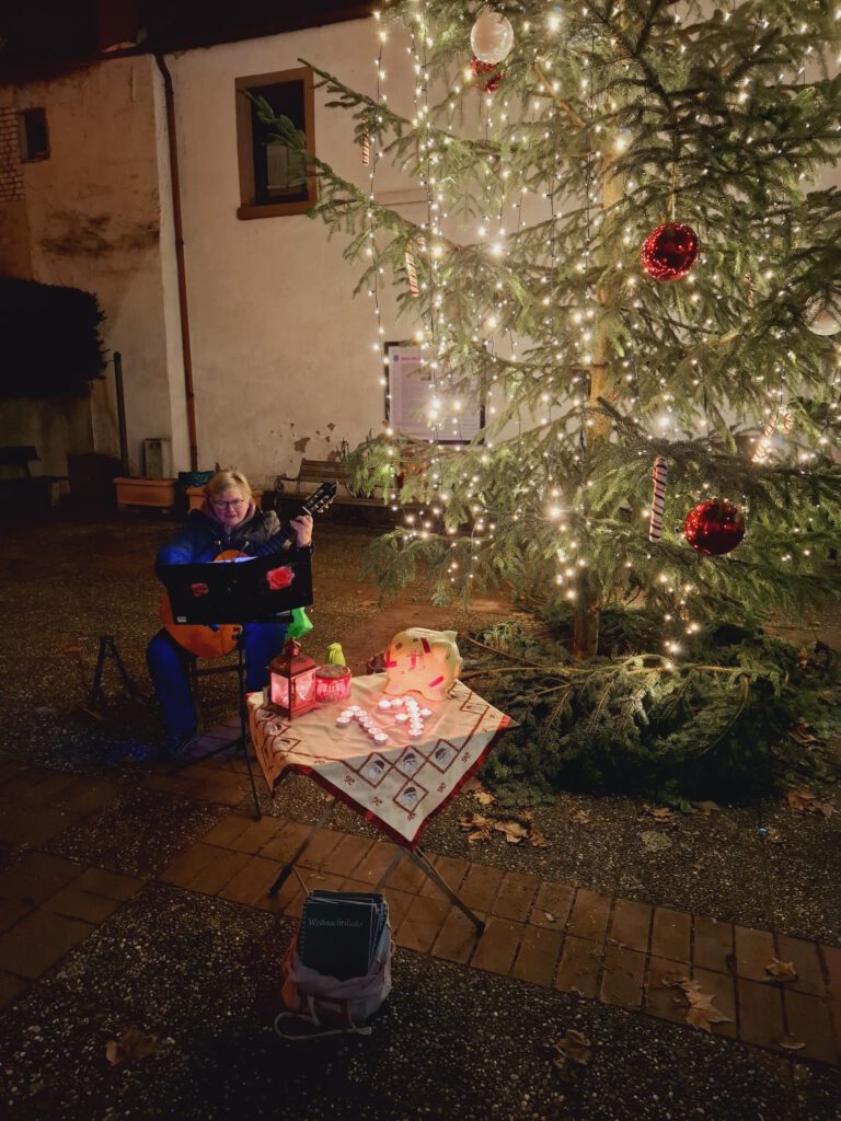 Zum heutigen „Weihnachtssingen am Brunnen“ versammelte man sich zu Füßen unserer Wallfahrtskirche St. Stephan, runde um den hell erleuchteten Tannenbaum, um gemeinsam mit Britta Sauer zu musizieren.