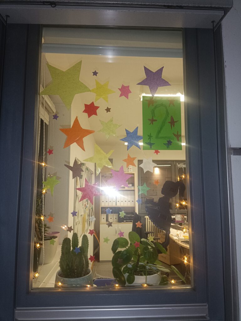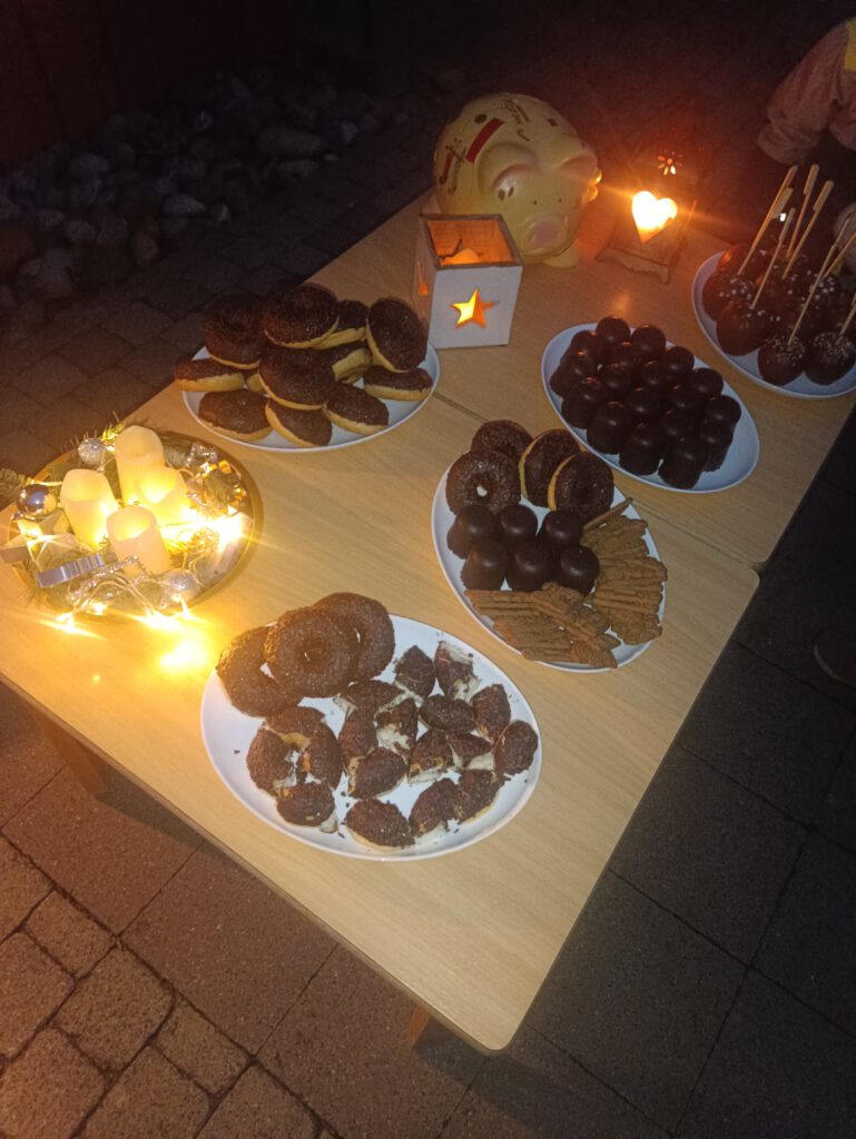 Ein festlich dekoriertes Fenster begrüßte alle Anwesenden am heutigen Abend in der Kita Ruhestraße. Das festliche Buffet versorgte die Besucher:innen allen Alters mit Kraft, um am kalten Abend der Geschichte zuzuhören. Diese war am heutigen Abend das Märchen der Sternentaler, welches mit vielen Ideen der zuhörenden Jüngsten begleitet wurde. Anschließend konnten sich Junge und Alte noch stärken, um den Heimweg durch die dunkle Nacht anzutreten.