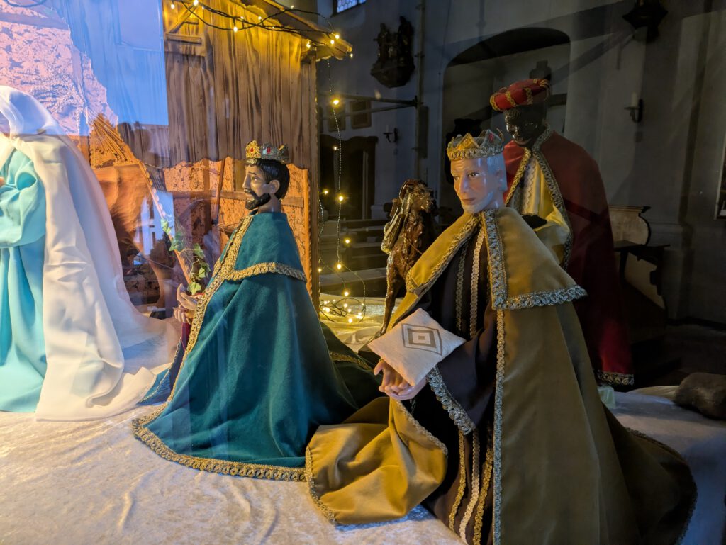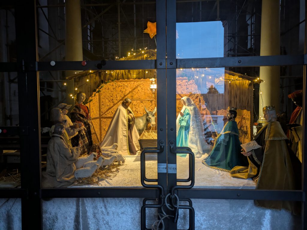 Und noch eine Krippe wollen wir euch nicht vorenthalten: Die katholische Kirche hat ihren Eingangsbereich geöffnet und die traditionelle Krippe einfach dort aufgebaut. Von 8-18 Uhr könnt ihr die nächsten Tage vorbeispazieren und sie euch genauer ansehen.