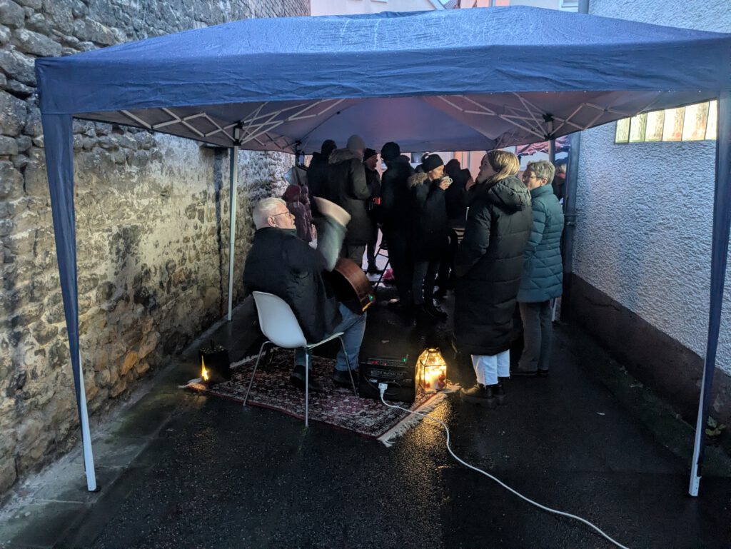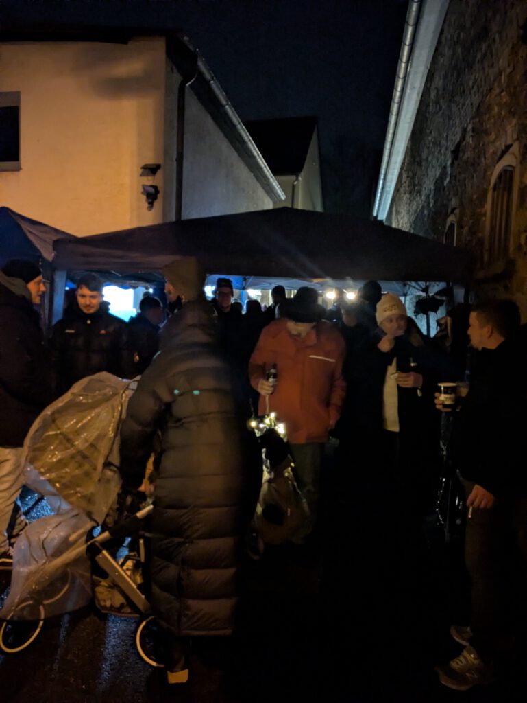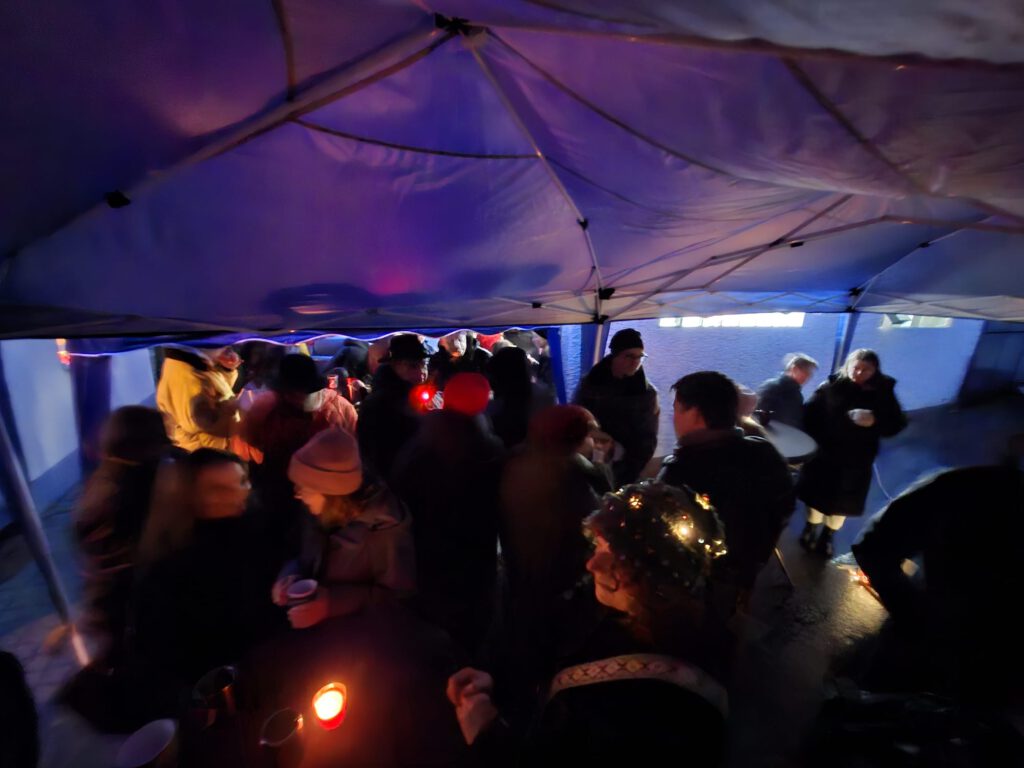 Regen hält echte Adventskalender-Fans nicht von einem Besuch ab, und wenn junge Leute zum ersten Mal einladen, wird es auch richtig voll.