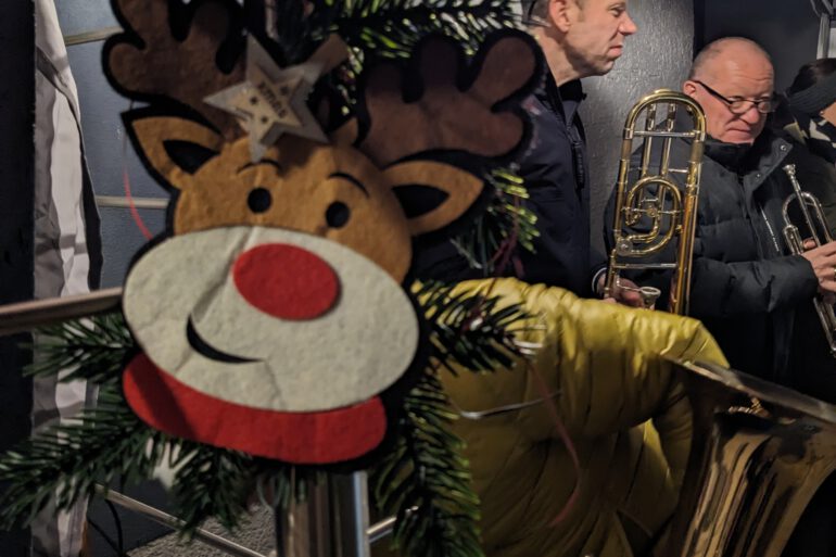 Wenn Familie Höflich einlädt, gibt es das rundumfängliche Adventskalender-Wohlfühlpaket: Ein Heißgetränk, von der Hausherrin persönlich in die hinteren Reihen gebracht, ein Zelt gegen etwaige Wetterkapriolen inkl Heizgerät für die Verfrorenen und „Fettebrote“ für den kleinen Hunger Für die musikalische Unterhaltung sorgte ein Bläserquartett, das aus Mitgliedern des Marienborner Musikvereins und einem Lerchenberger Freund der Familie…